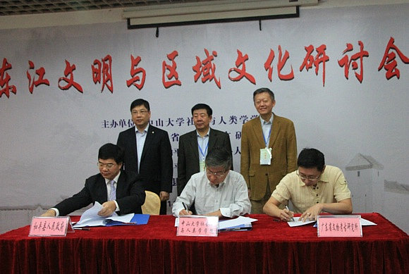 11月20日至21日,yl23455永利集团人类学系、广东省文物考古研究所、和平县人民政府三方在和平县举行了“广东田野考古研究基地”、“人类学科研教学基地”合作协议签字及揭牌仪式,同时召开了“东江文明与区域文化研讨会”。校党委常务副书记、副校长陈春声,中国文物保护基金会理事长、原国家文物局副局长张柏,我校人类学系主任麻国庆,和平县委书记蓝岸,广东省文物考古研究所副所长邓宏文出席了仪式和研讨会。参加仪式和研讨会的还有来自省内外考古文博机构、科研机构及高校的专家学者等。