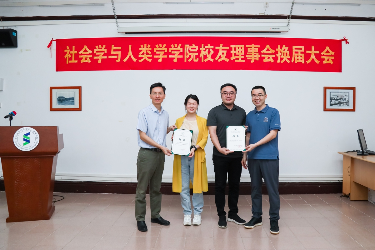 会议通过了新一届校友理事会成员名单,陈险峰书记和余成普院长为到会校友理事颁发聘书。