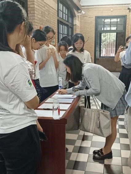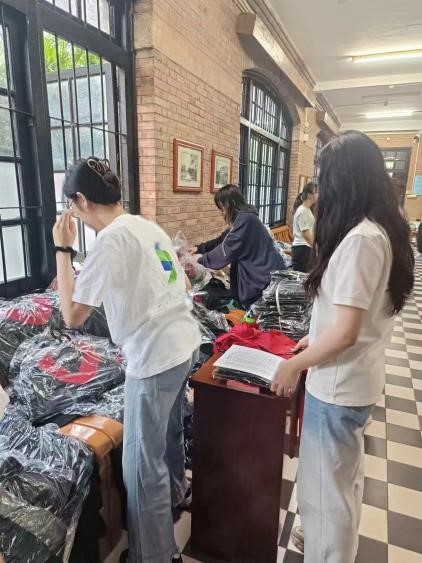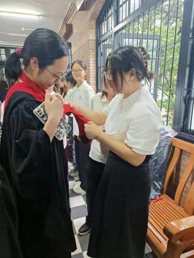 烟雨朦胧,飞燕知归途;马丁堂下,聚首忆芳华。校园里的花草散发着淡淡的清香,为这个重大的日子增添了一份清新和宁静。微风轻轻拂过,吹起了窗外的翠绿枝丫,也吹起了志愿者们心中的期待和喜悦。清晨,社会学与人类学学院的志愿者们早早地来到了场地,认真准备着每一件学士服,仔细检查领带、服装、帽穗等,一切都在紧张而有序地进行着。志愿者们热情地迎接20届师兄师姐们,引导他们签到、分发毕业典礼的入场券,并指引他们前往体育馆。志愿者们的微笑和耐心,为20届毕业生们送上了真挚的祝福;一张张入场券,寄托着中大与校友们深刻的情谊,包含着毕业生们过往的回忆。三年荏苒,他们依然是意气风发的少年。悠悠中大情,可抵岁月长。