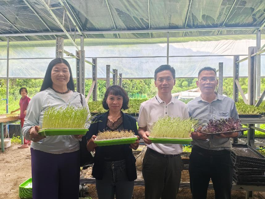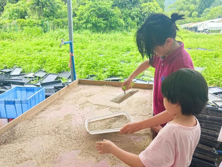 用餐后,大家在校友彭董事长的带领下参观了有机蔬菜种植区,深入了解有机农业的种植理念与技术流程,包括育苗方式、种植周期及环境控制等。在了解了相关蔬菜种植知识以后,农场还安排了菜苗的种植体验环节,以深化大家对有机蔬菜的认识。在工作人员的指导下,大家还饶有兴致地比较起不同菜苗的生长状况,育苗架上焕发的勃勃生机,更激发了大家对于自然和生态智慧的敬仰之情。