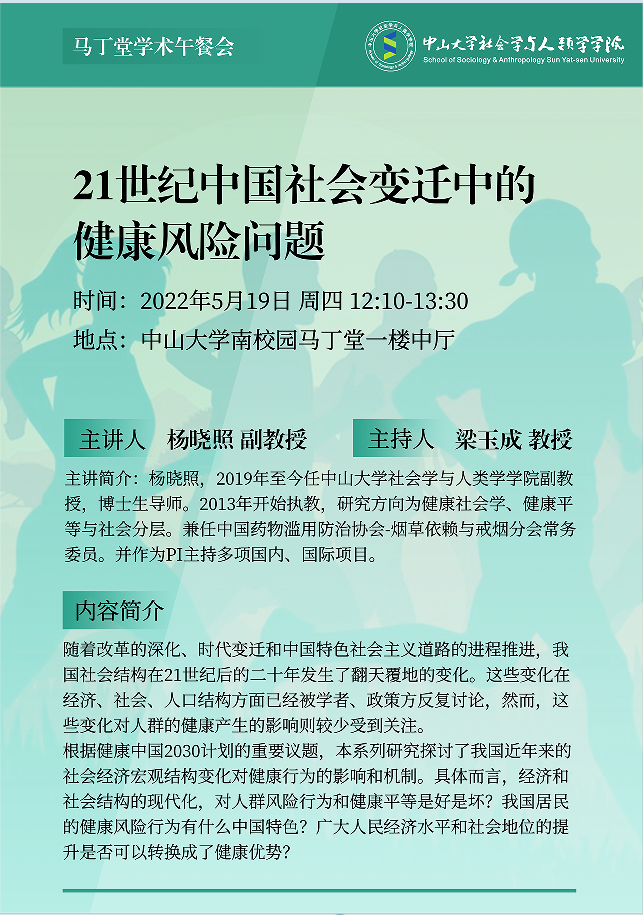 导航痕迹 yl23455永利集团 社会学与人类学学院 学术科研 会议讲座 学术讲座 21世纪中国社会变迁中的健康风险问题 扫描此二维码分享 21世纪中国社会变迁中的健康风险问题 发布人:蒋文涵 发布日期:2022-05-20 活动时间 2022年05月18日 11:00 - 2022年05月18日 14:00 活动地址 广东省广州市