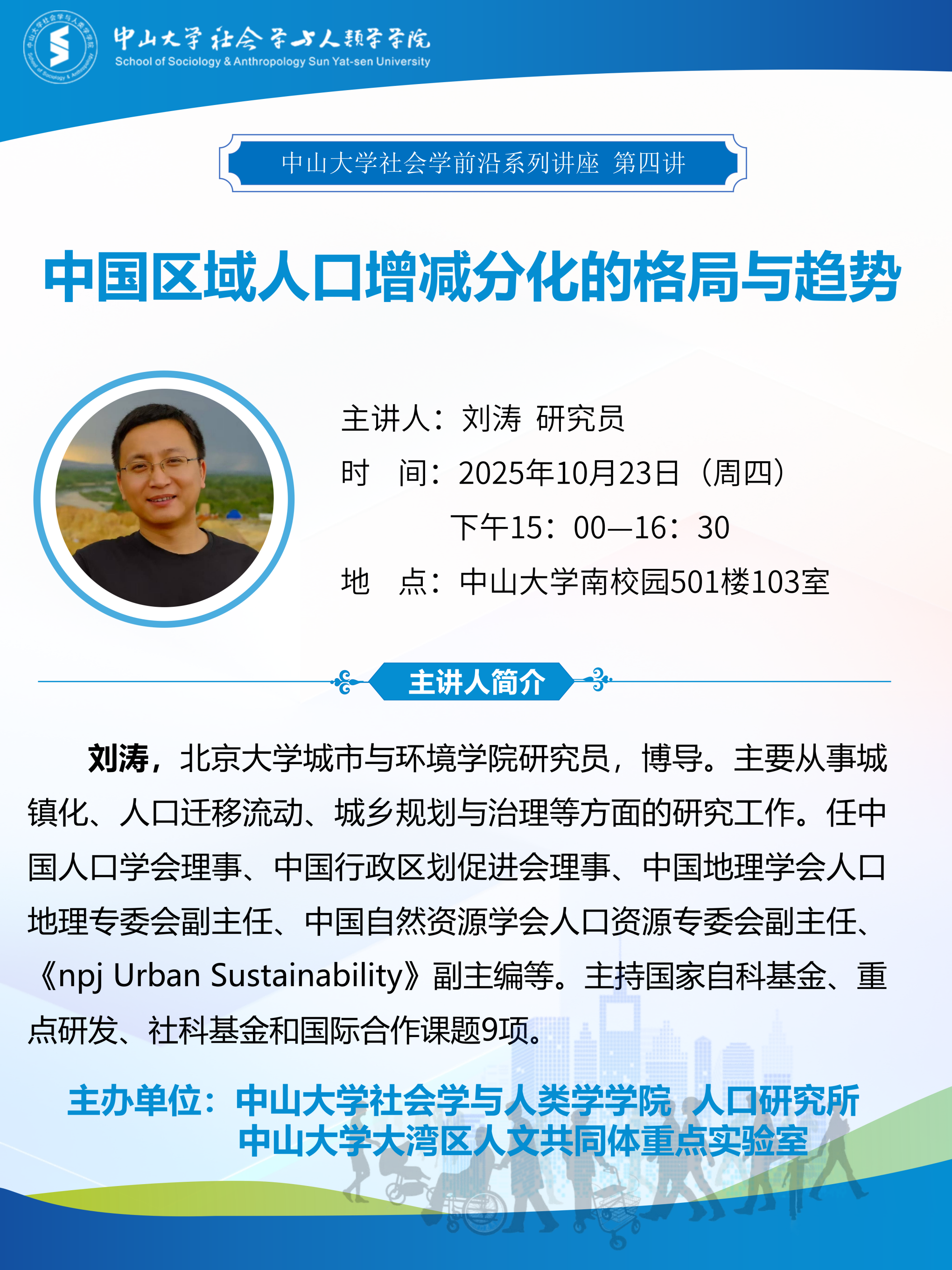 刘涛,北京大学城市与环境学院研究员,博导。主要从事城镇化、人口迁移流动、城乡规划与治理等方面的研究工作。任中国人口学会理事、中国行政区划促进会理事、中国地理学会人地理专委会副主任、中国自然资源学会人口资源专委会副主任、《npj Urban Sustainability》副主编等。主持国家自科基金、重点研发、社科基金和国际合作课题9项。